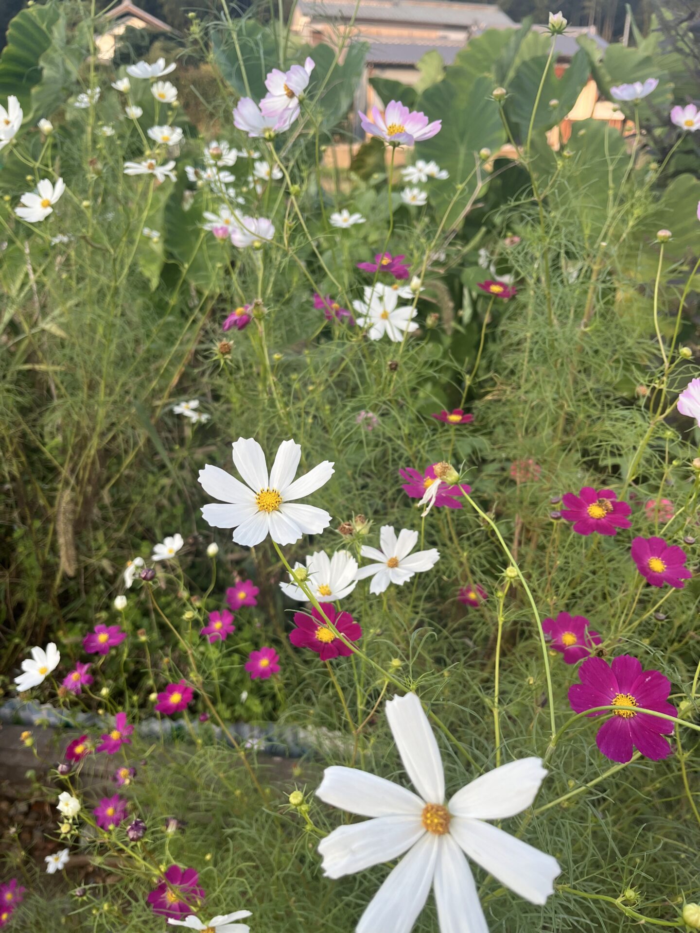 ピンク白ムラサキのコスモスに切り替わってくると「秋だな~」となります。