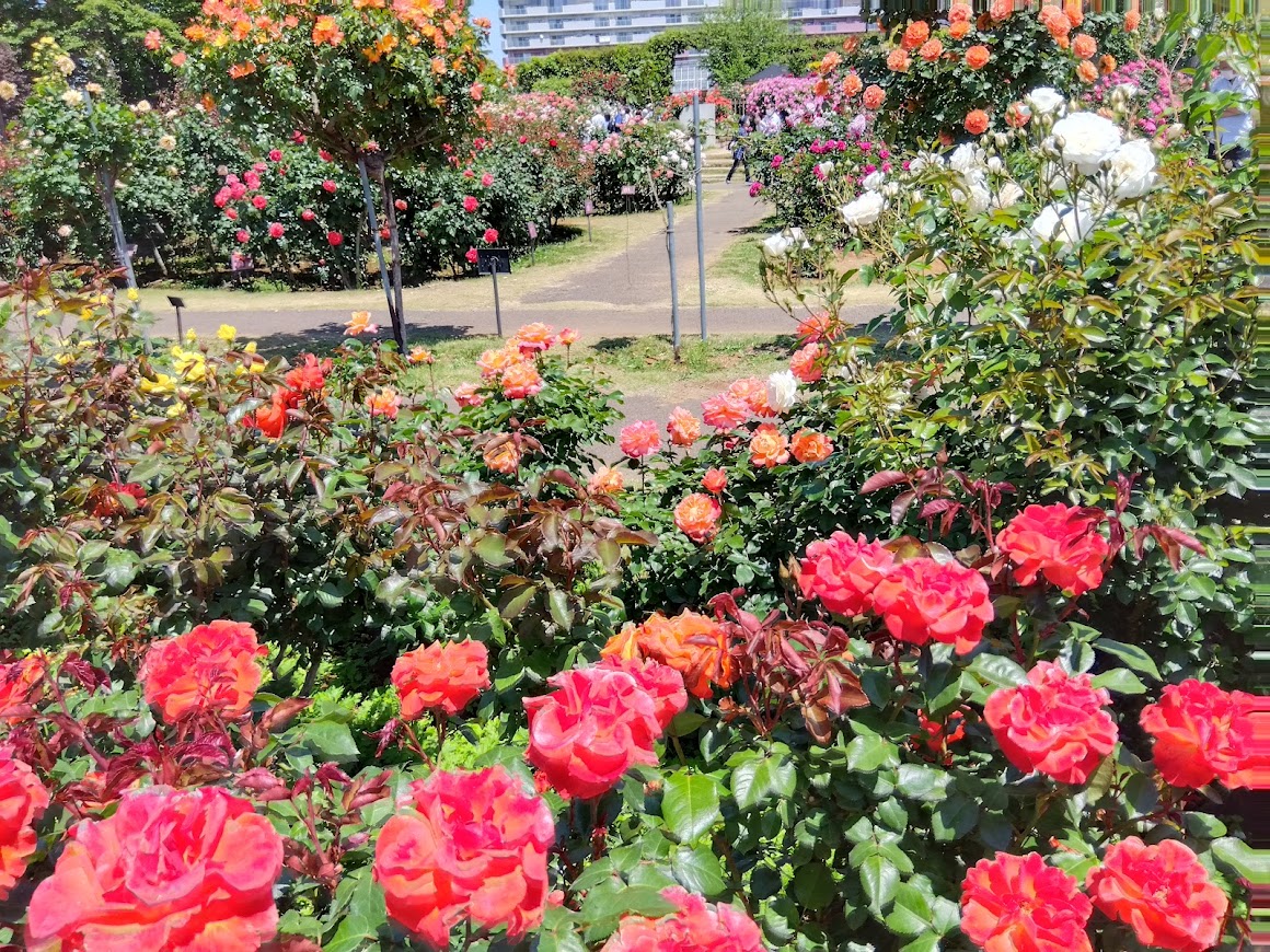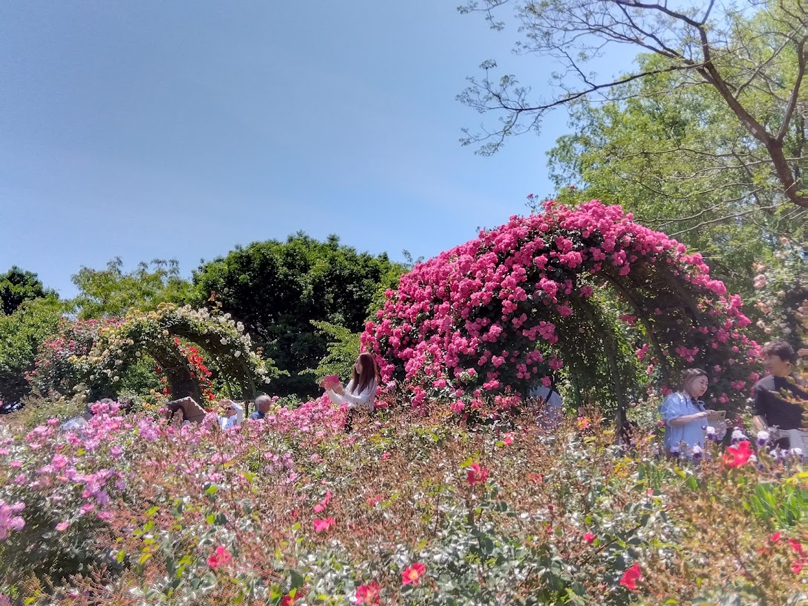 広々とした園内には色とりどりのバラが💕