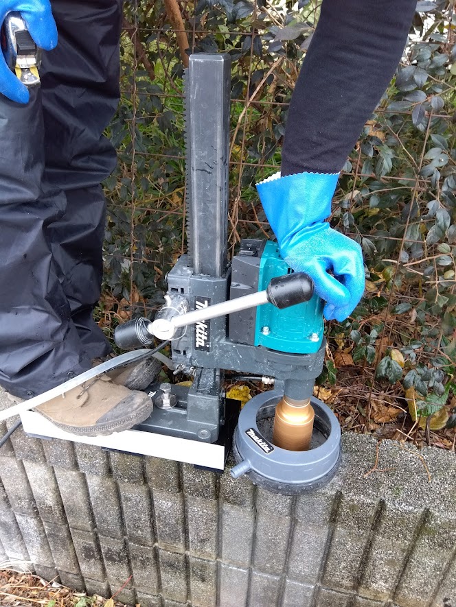 まずは「コア抜き」という作業でブロック天端に穴を空けます。