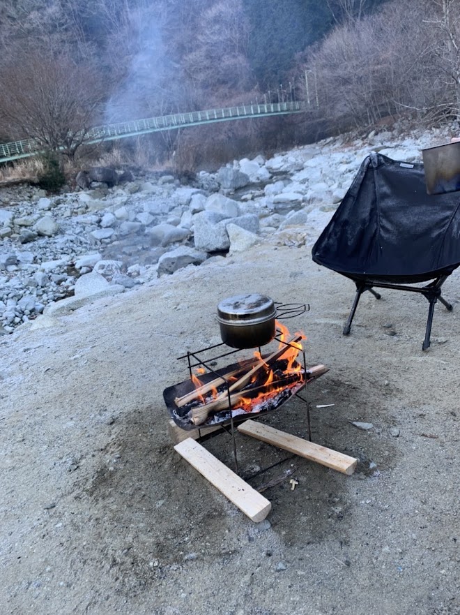 私はキャンプ道具は何ひとつ持っていないので、すべて友人頼みです。