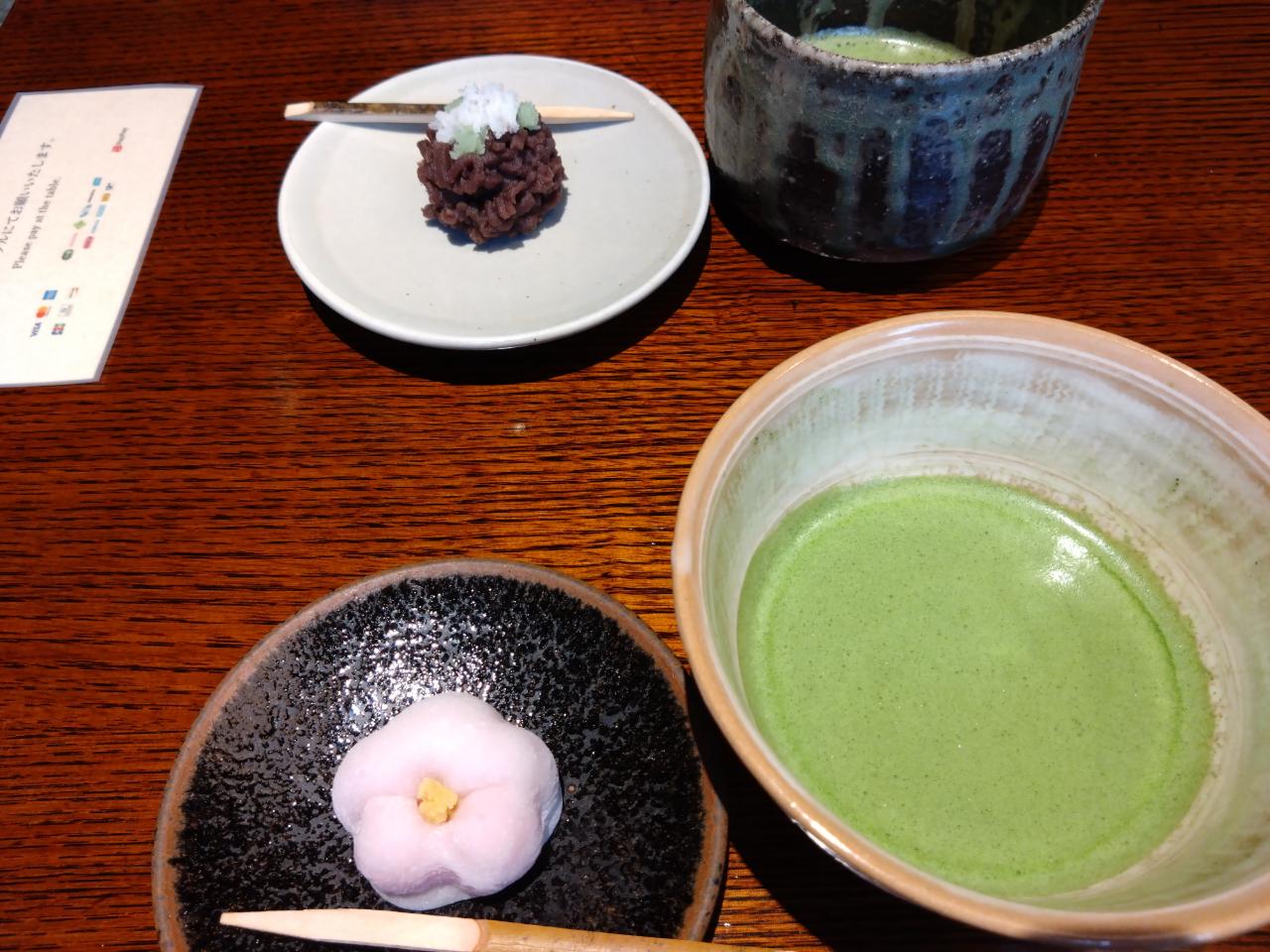 途中見つけたお抹茶のお店に入り、薄茶とお菓子を頂きました!