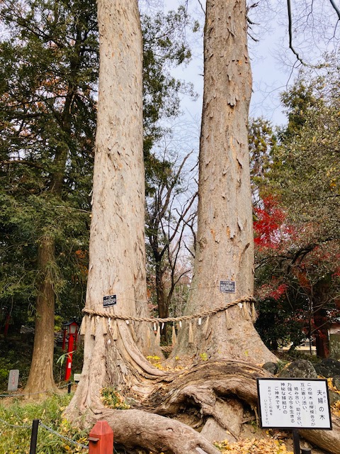 縁結びのご利益があるそうです。違う種類の木でも、支えあって生きているなんて素敵ですね🌳🌳