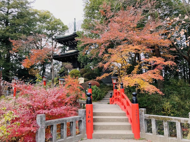 真っ赤な太鼓橋とモミジが綺麗ですね✨
