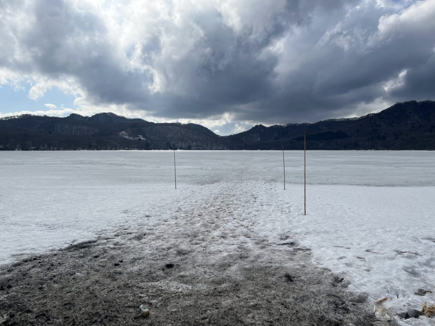 徐々に山肌に残雪が現れ始め、到着した時には気温は6℃💦