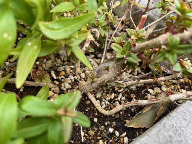 花時期が長く、その間に枝葉はぐんぐん伸びて、冬でも葉っぱが残っていたので剪定のタイミングが判らずにいたのですが、今になって茎の根本に新芽が出始めていました🌱こうなれば、安心して伸びきった枝葉とサヨナラできます。