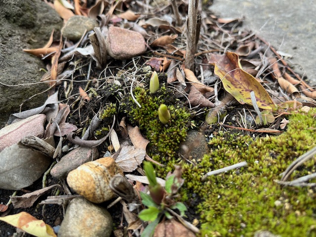 スイセンと同じく球根植物紫蘭の芽吹き🌱