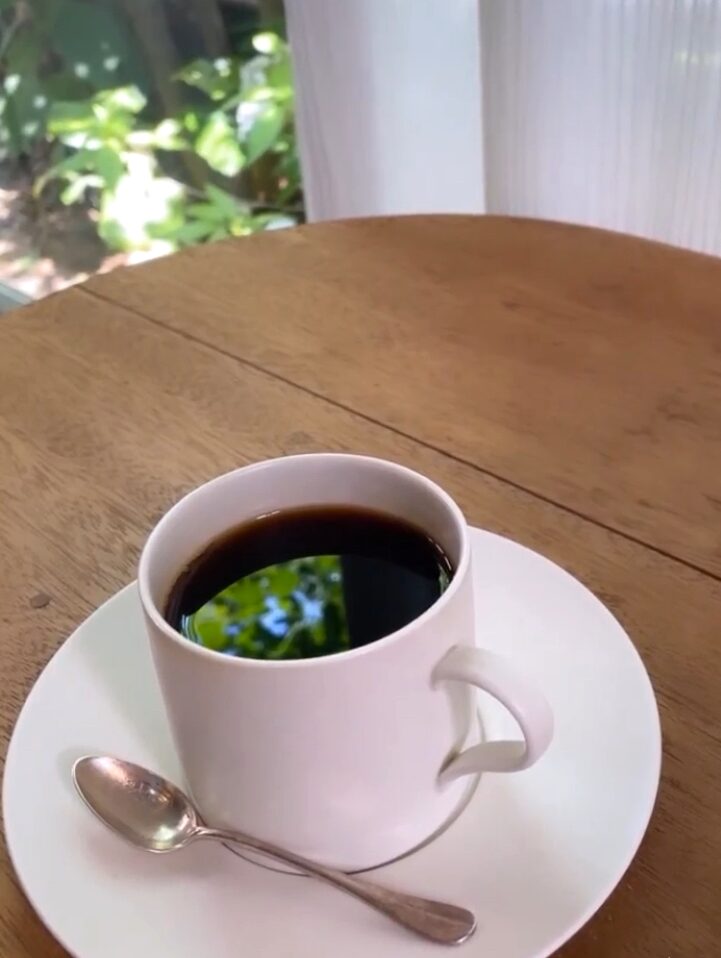 白を基調とした木のぬくもりが感じられる静かな店内から、お庭の緑を見ながら美味しいコーヒーをいただく時間に