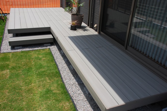 リビングの延長感覚で使えるウッドデッキ。