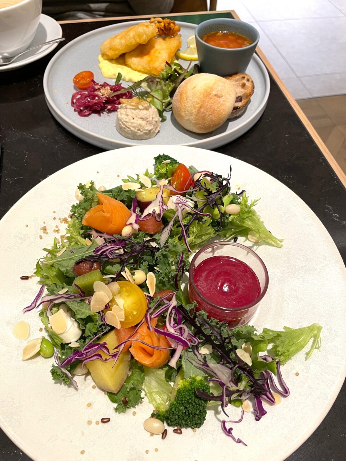 ラウンジスペースで食事は、ボリュームがあって見た目も華やかで心もお腹も大満足でした🥰