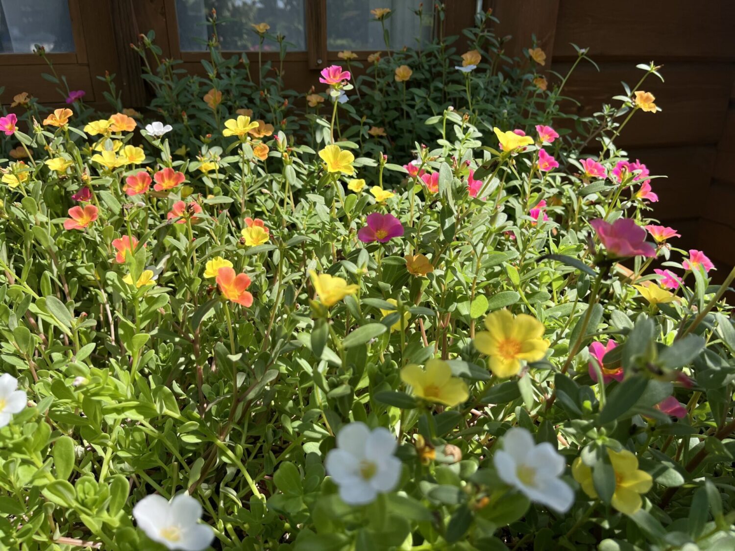 現在もログハウスの前の植込みスペースで毎日華やいでおりますのでご来社の際には目にとめてみて下さい。