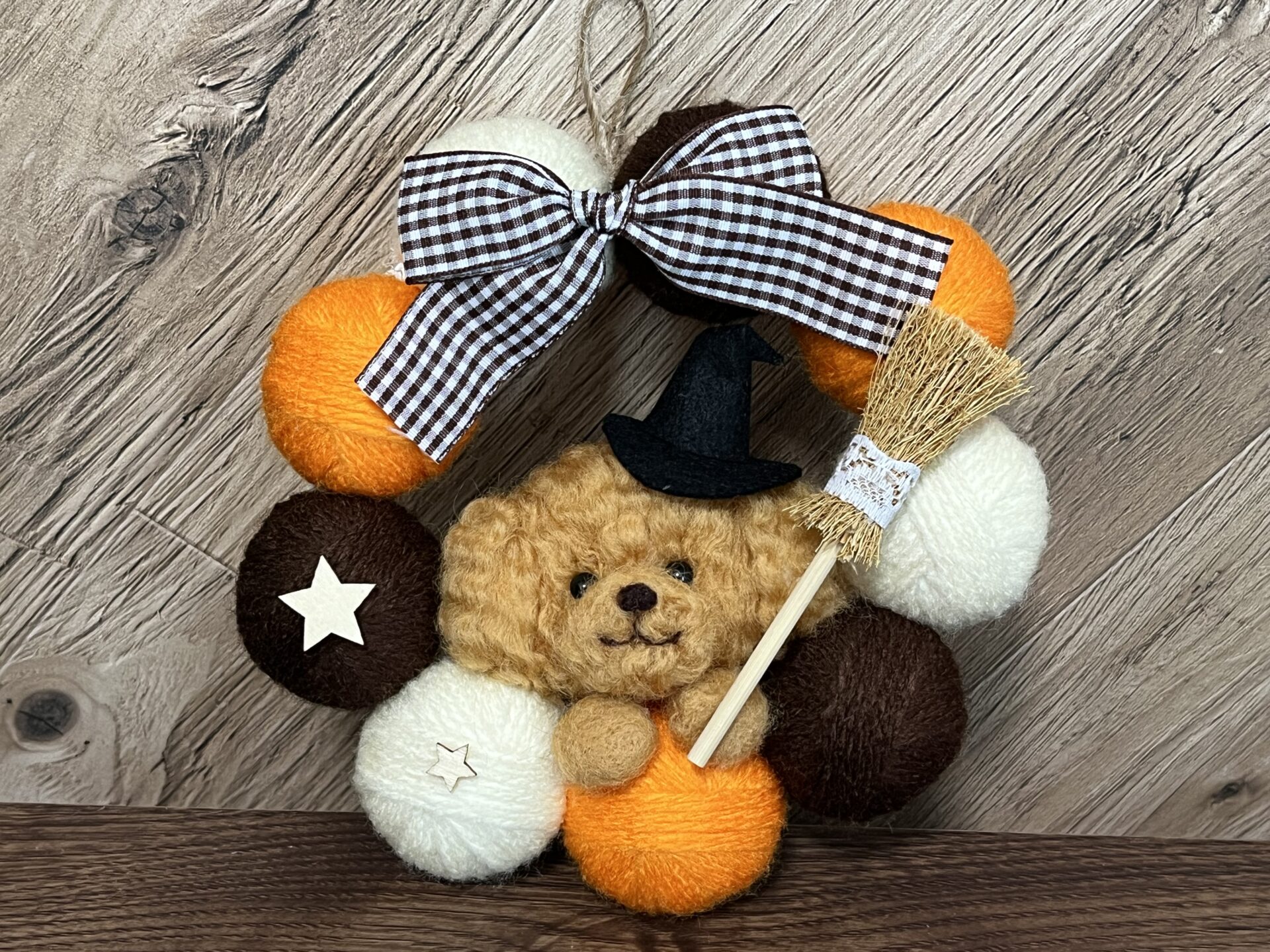 リースはハロウィンのもの。魔女の帽子を被ったトイプードルのリースです。とても人気で人気の犬種はすぐに売り切れていました。
