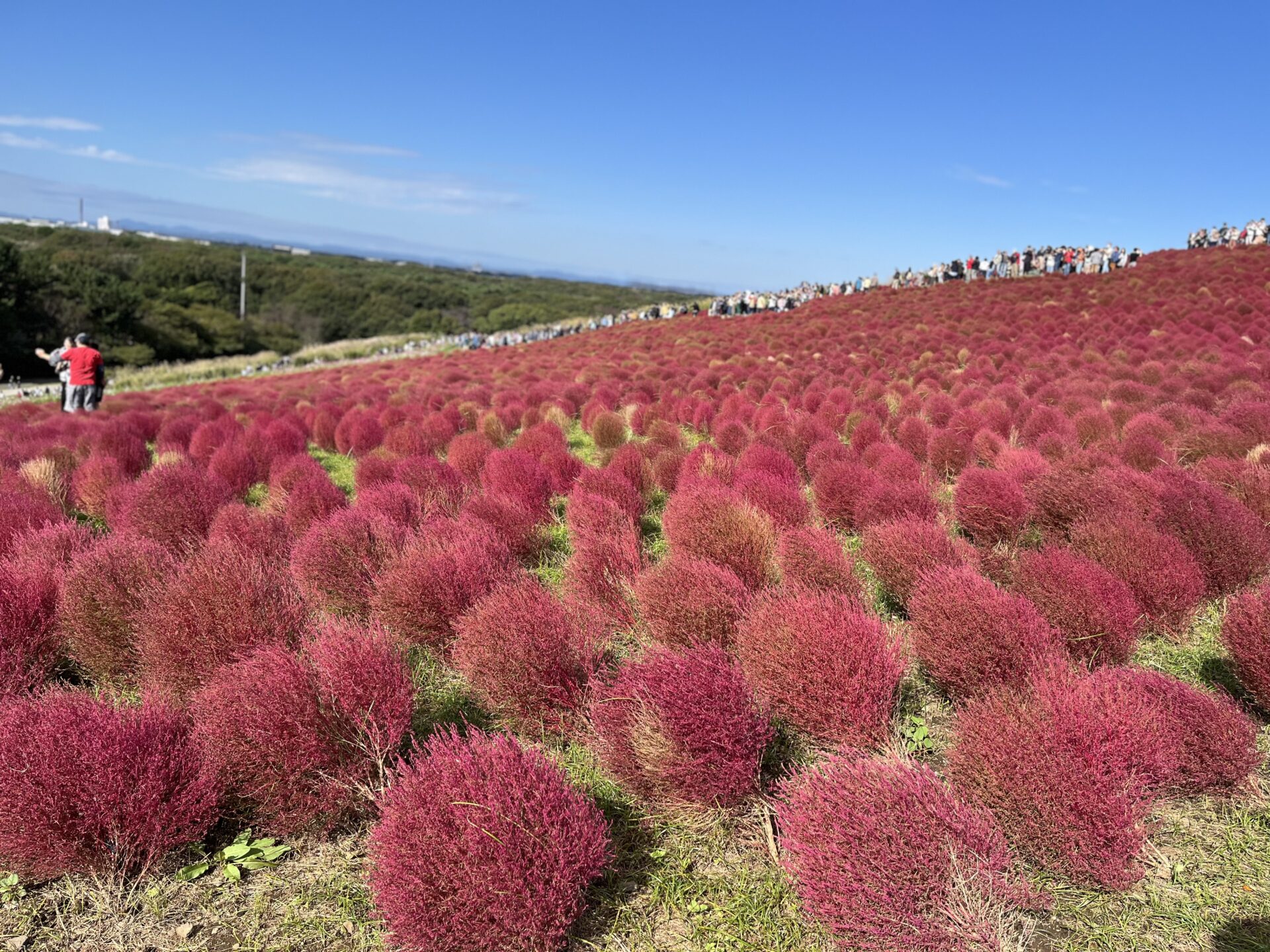 私が行った日はちょうどコキアが見頃だったのでたくさんの人がいました。