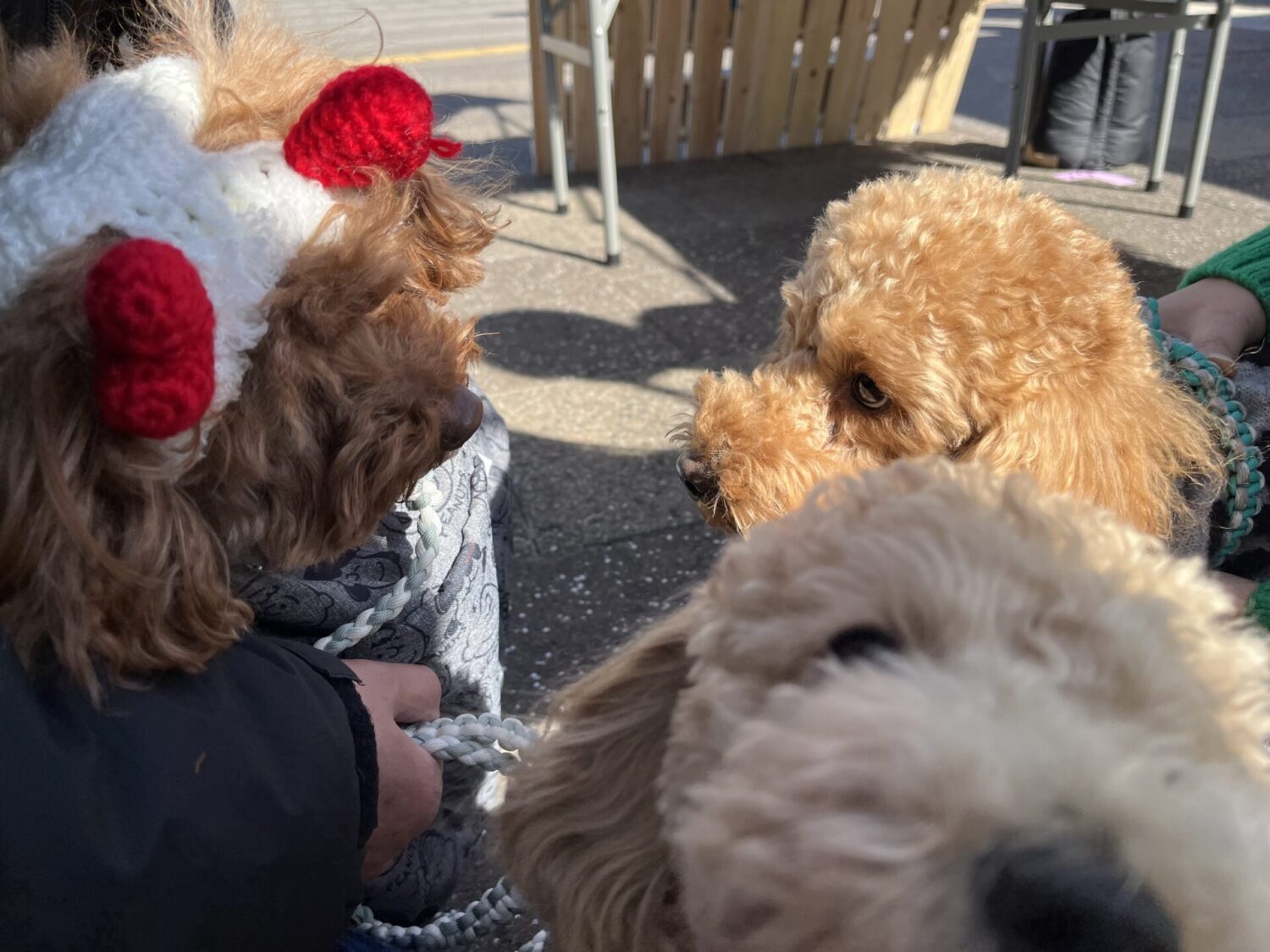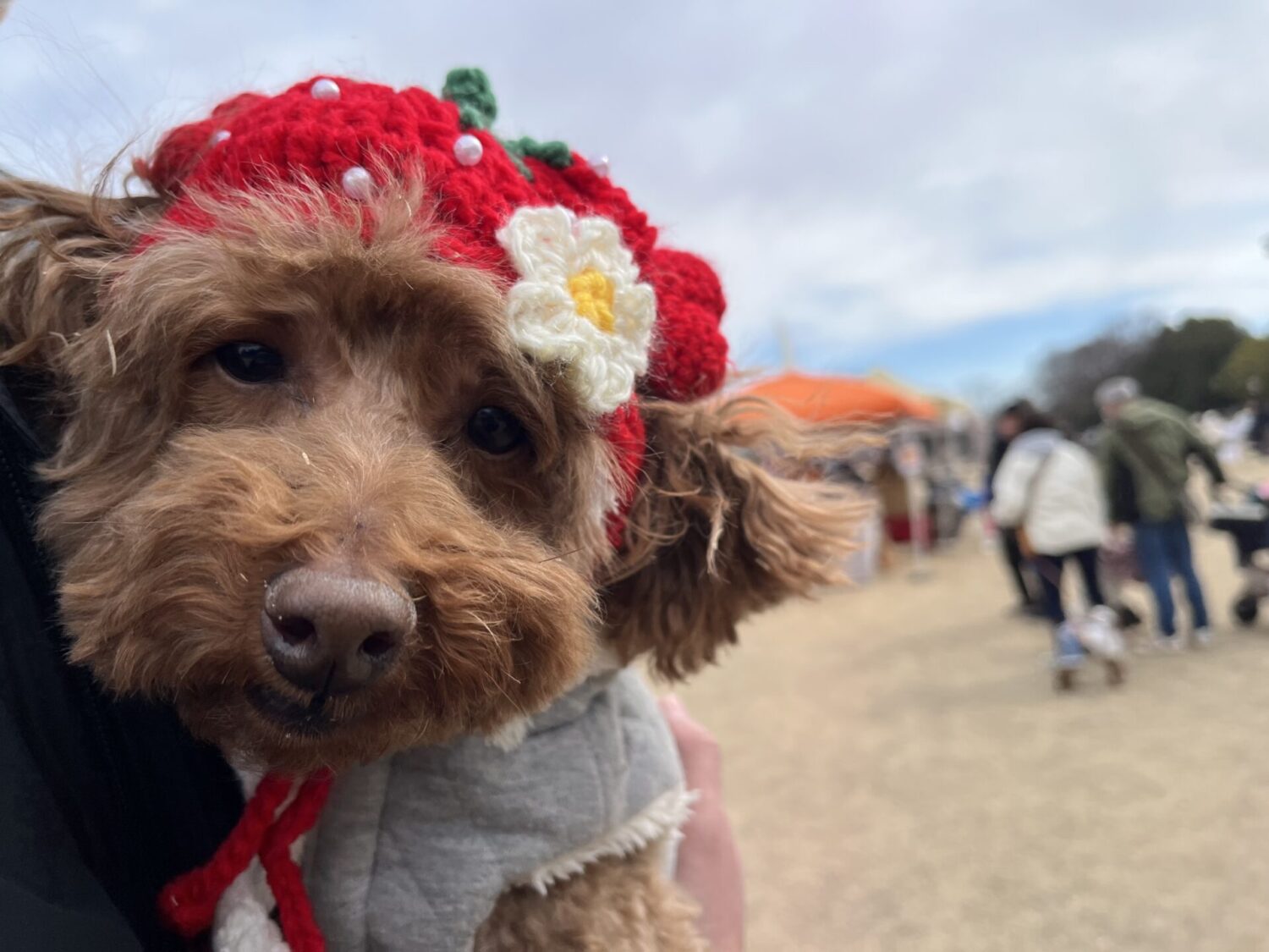他のワンちゃんが同じものを被っていると、そこで飼い主さんとお話したり、ワンコと触れ合えるので、癒されます。
