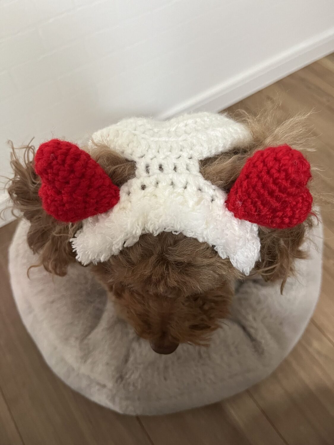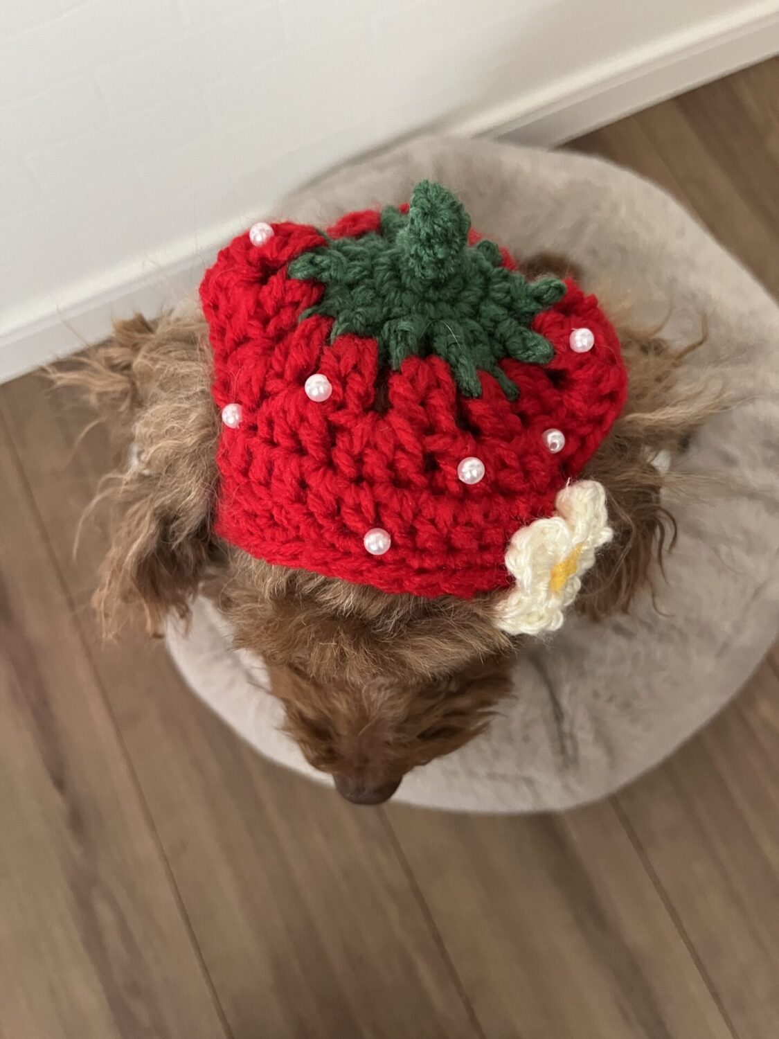 この帽子は気に入ったのか、お家に帰って来てからも、嫌がらず、しばらく被っていました。