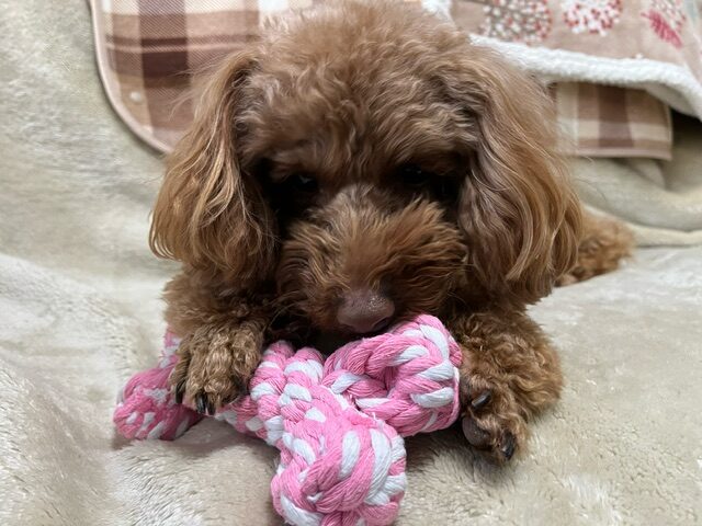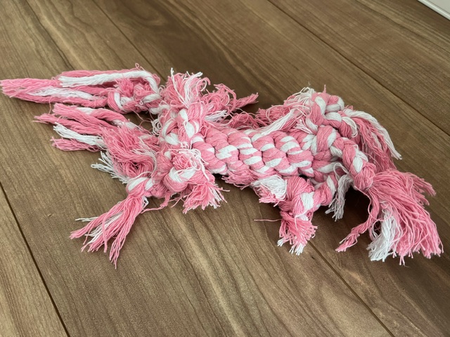 最近のお気に入りは骨の形をしたロープのおもちゃです😊
