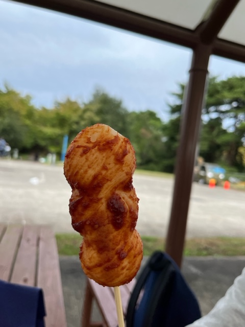 コキアだんごは旨辛みそ味で、みたらし団子みたいに甘くはなく