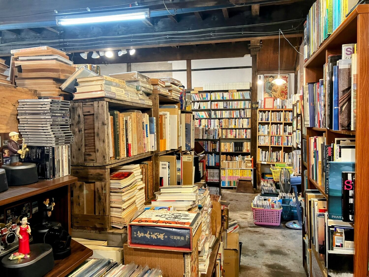 小説やレコード、古い雑誌や郷土資料まで置いてあります。見ていて飽きませんね...!
