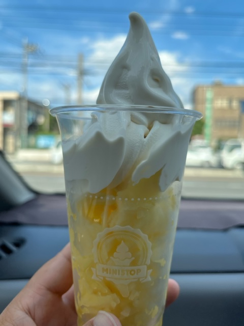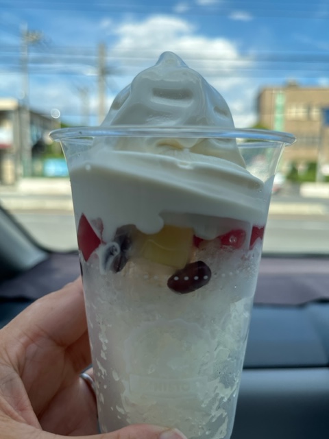 氷の上にソフトクリームものっていて、1つで2つの味が楽しめます