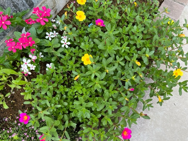 我が家の花壇では「ポーチュラカ」が元気に咲いています。