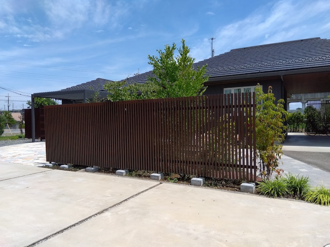 お庭と駐車スペースを区切り、視線を遮る