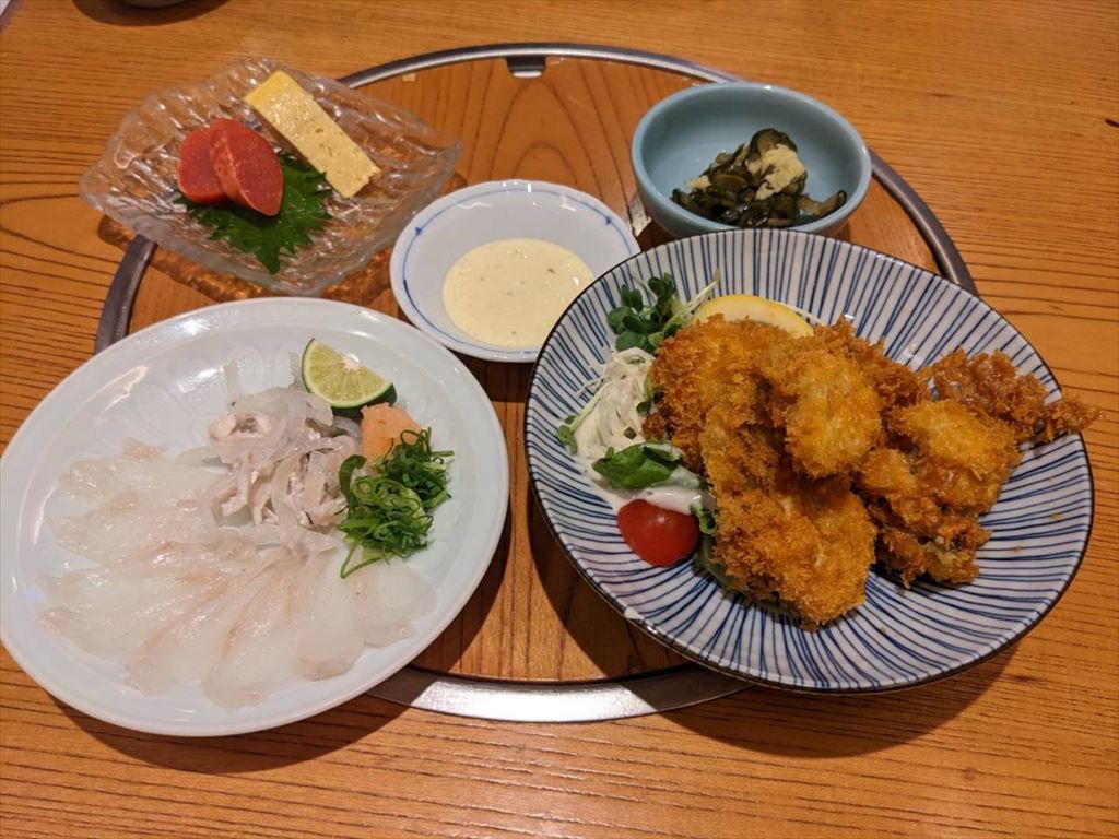 朝からお酒が飲めるお店での食事です。