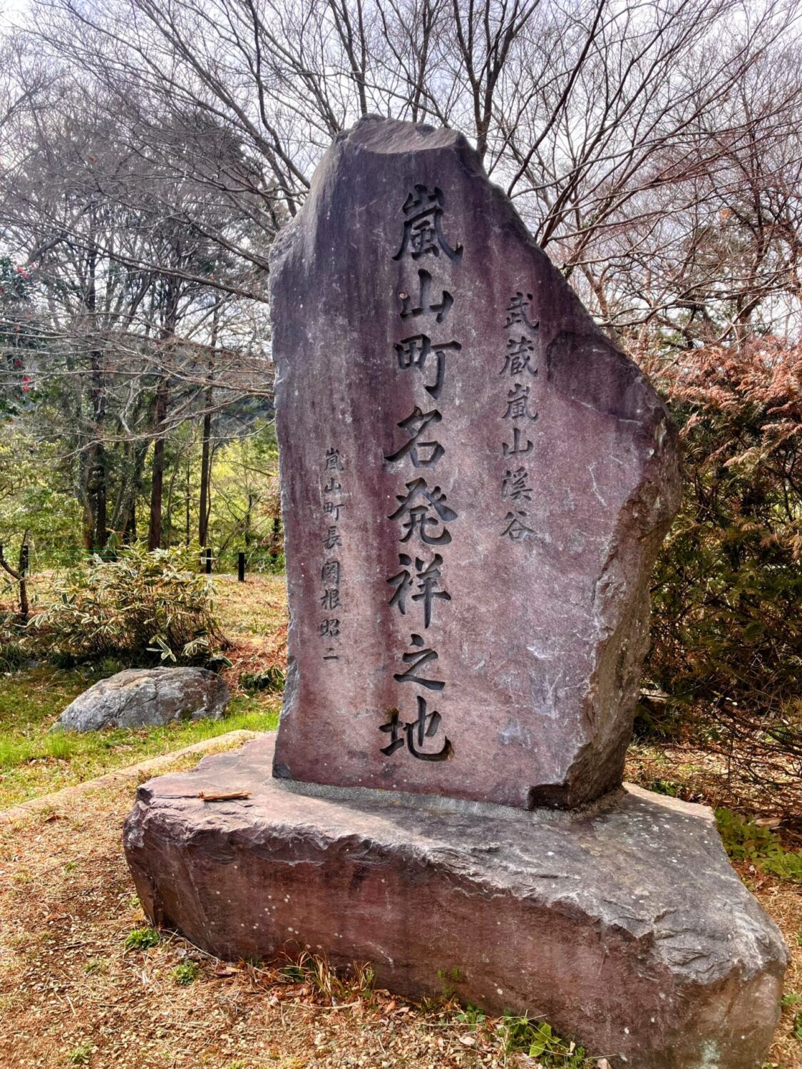 歩いて2~3分ほどで、「嵐山町名発祥の地」の石碑がありました。