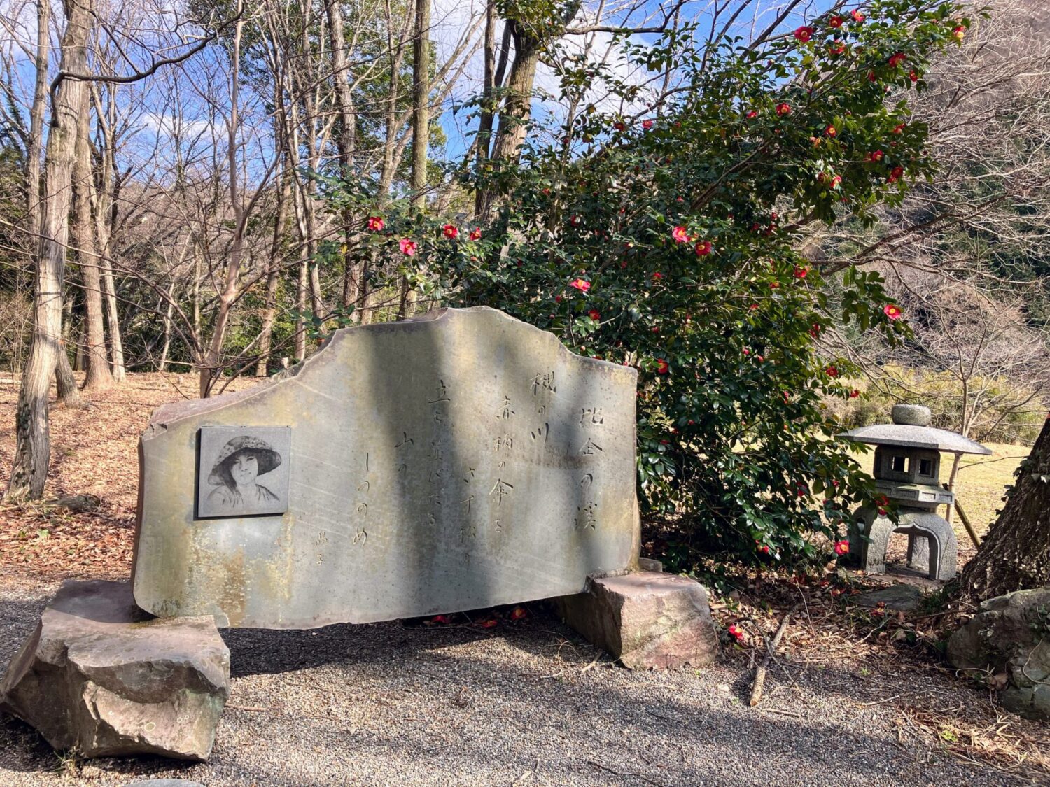 嵐山渓谷にはちょっと飛び出た半島のような部分があるのですが、そちらに向かって進むと与謝野晶子の歌碑があります。