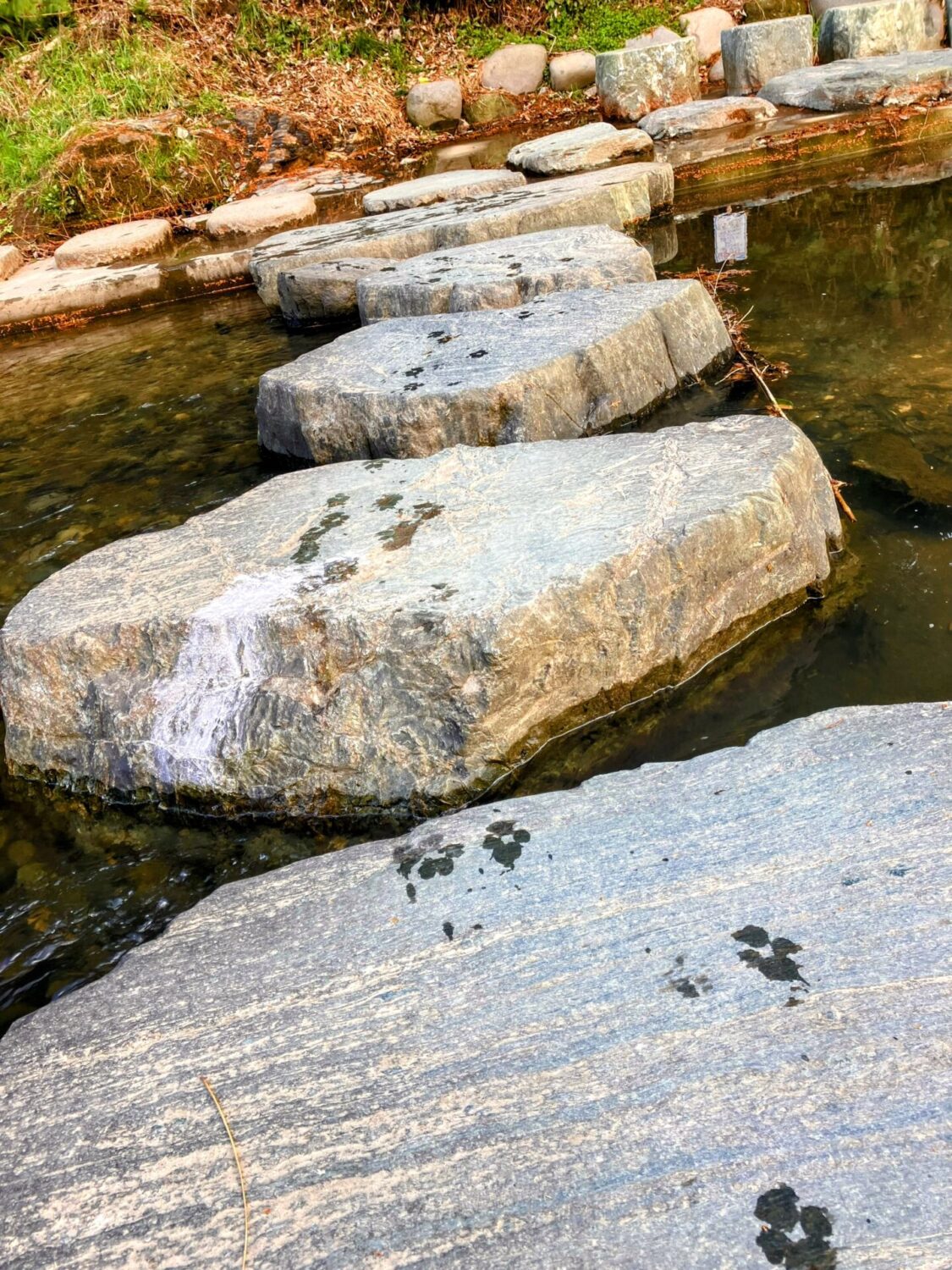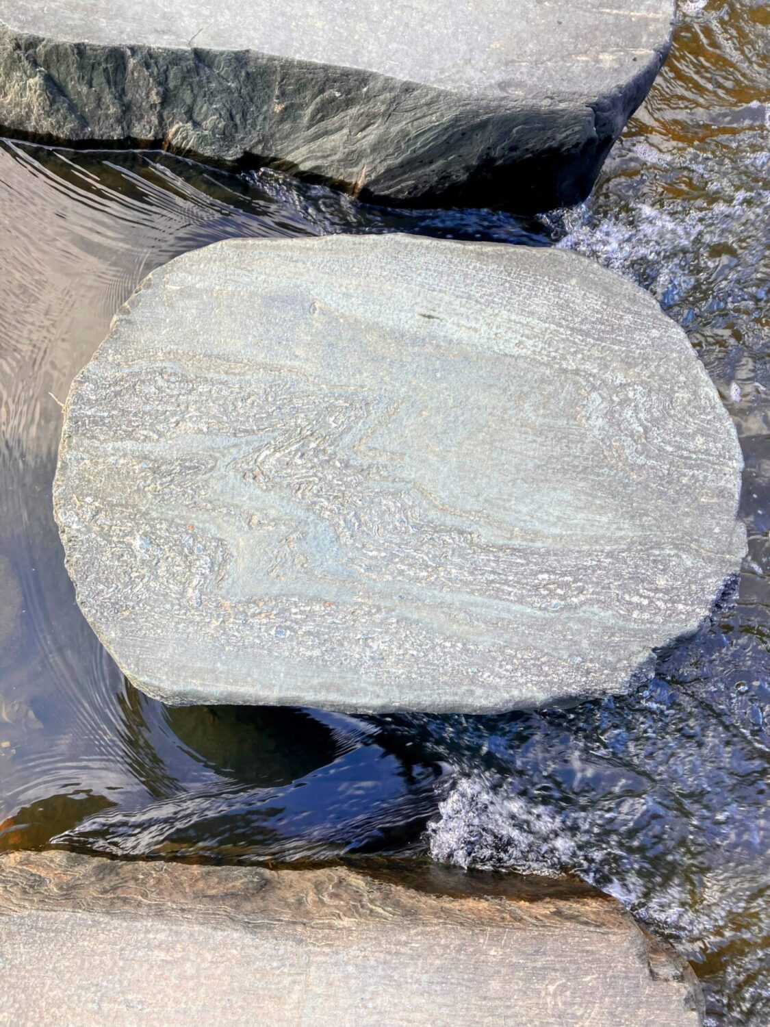 石を上から見ると、川の流れのような模様がついており、なんだかきれいです。