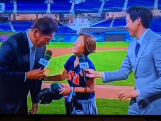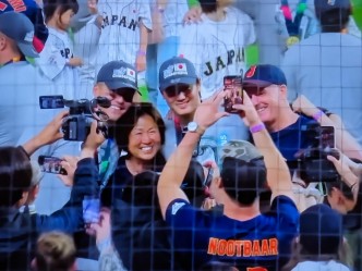 WBC優勝後のスタジアムで大谷選手と写真を撮ったり、