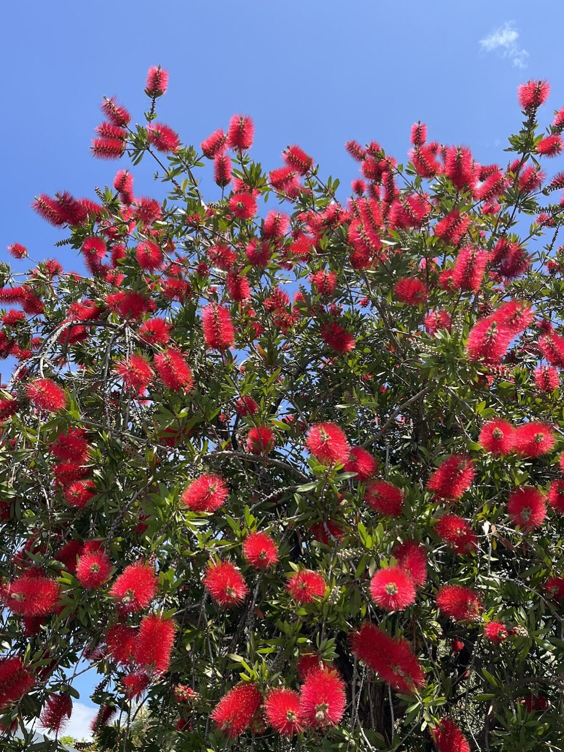 ちょうどブラシの木の花が満開で