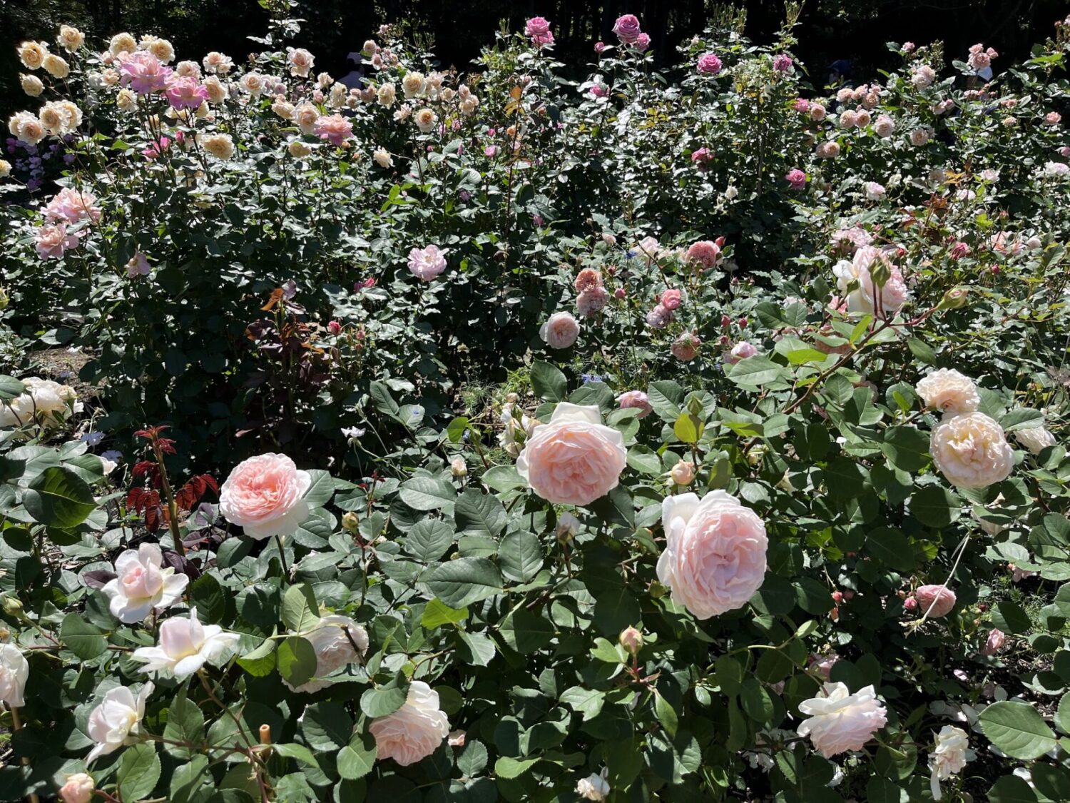 バラ園はたくさんの品種のバラがあり