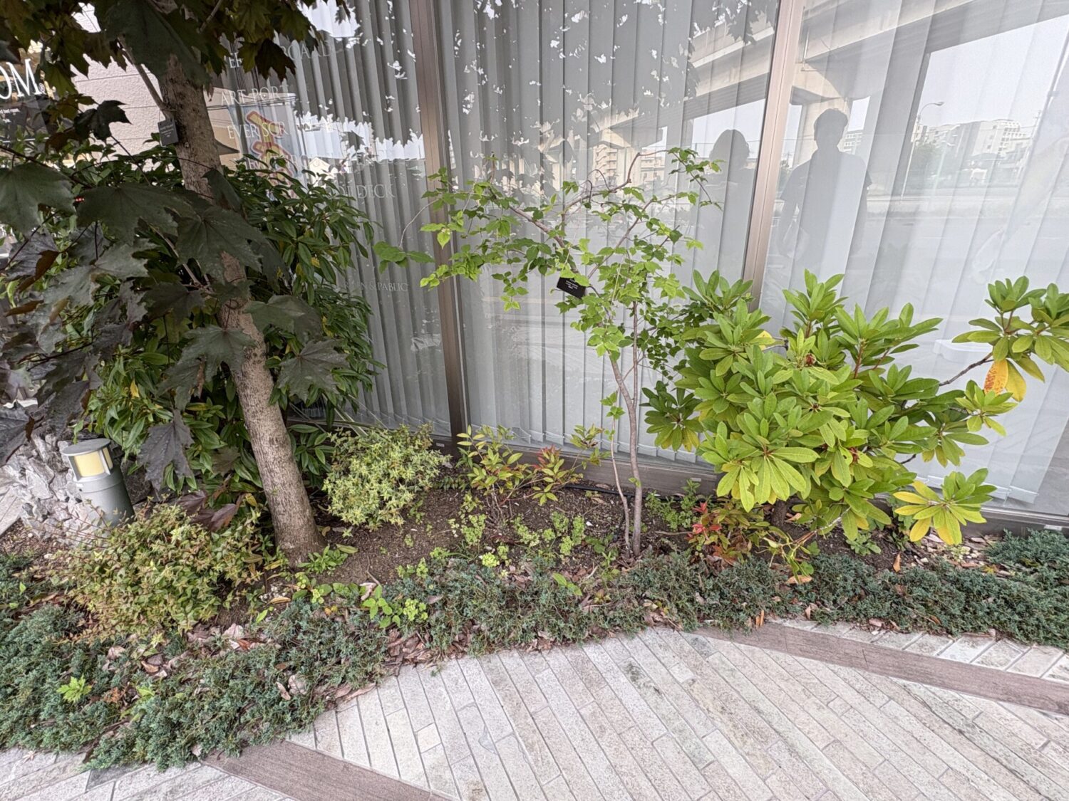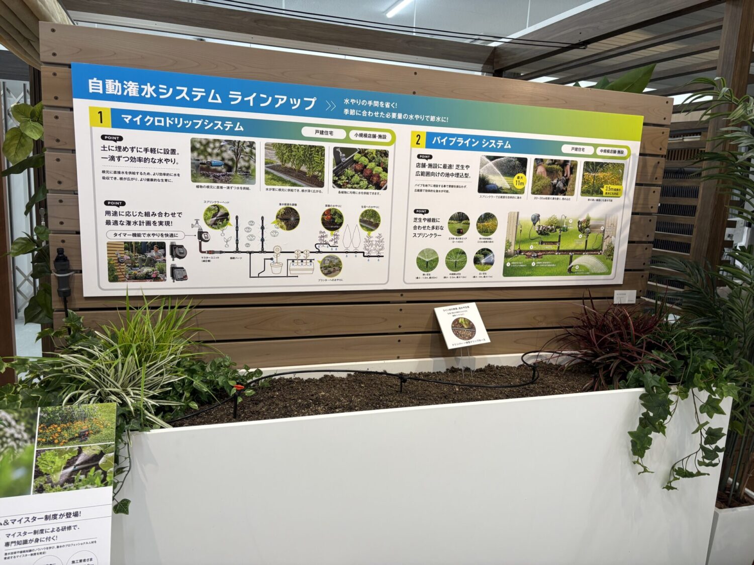 エコ・グリーン設計の本社は、入り口を入ってからの外観から、本社の屋上などにお庭の展示場としてたくさんの展示をしています。
