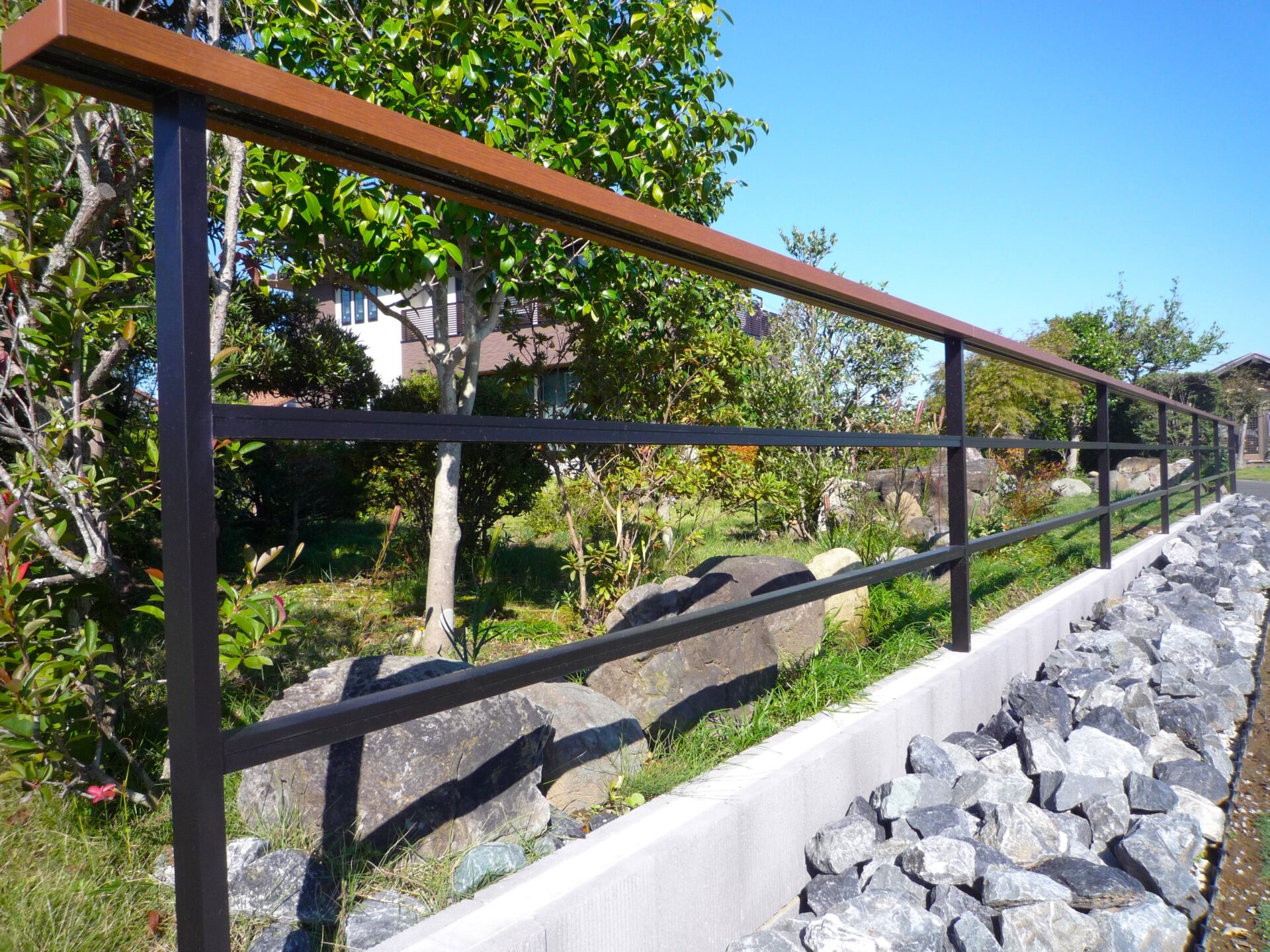 お庭と道路の境界には、間仕切り柱タイプですっきりとした印象のYKK「ルシアスフェンスLiteB03型」を設置しました。