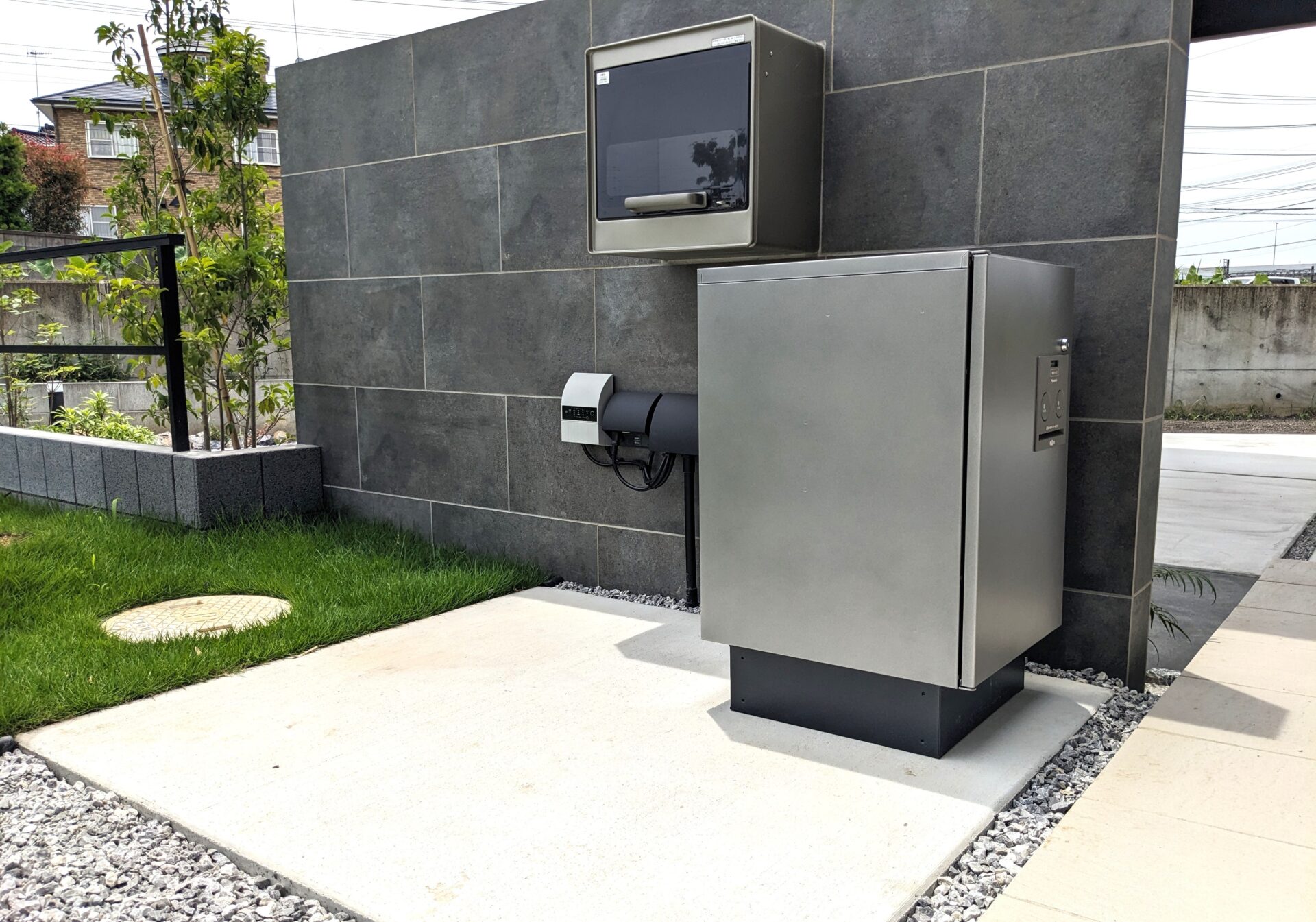 門柱の裏側に宅配ボックスを設置することにより、玄関まわりもすっきりとした印象に見せてくれます。