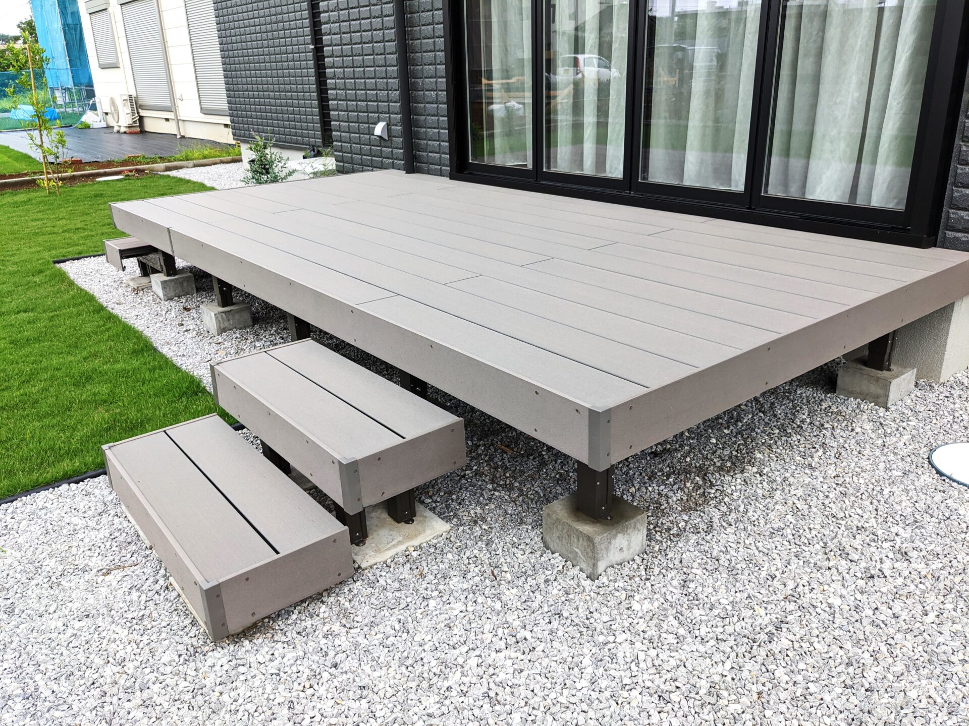 木の自然な風合いや天然木のようなナチュラル感を表現した人工ウッドデッキです。