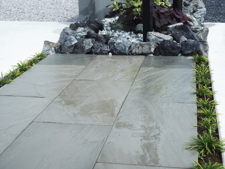 方形石・ピンコロ石をライン状に配置し広がりを演出しました。