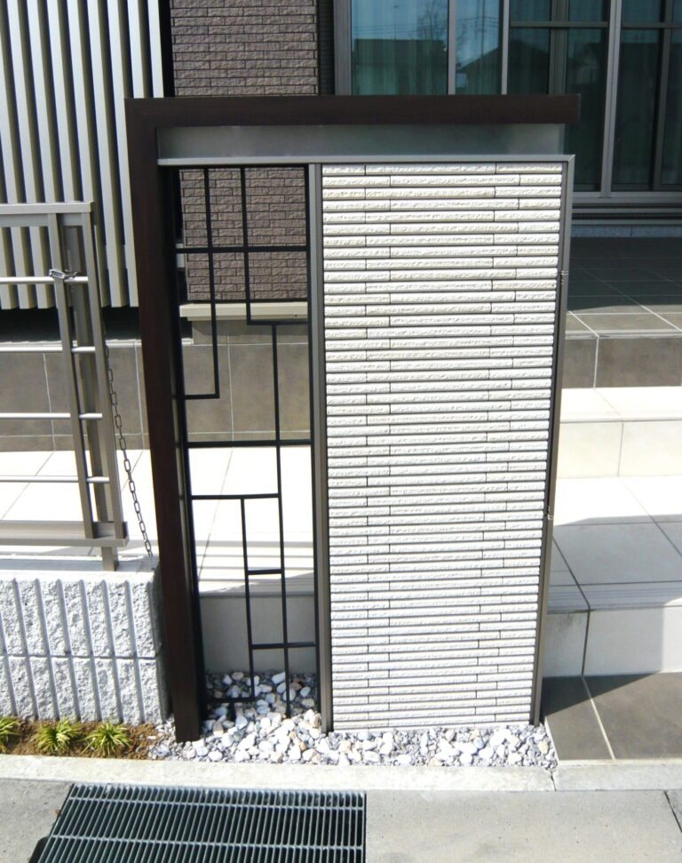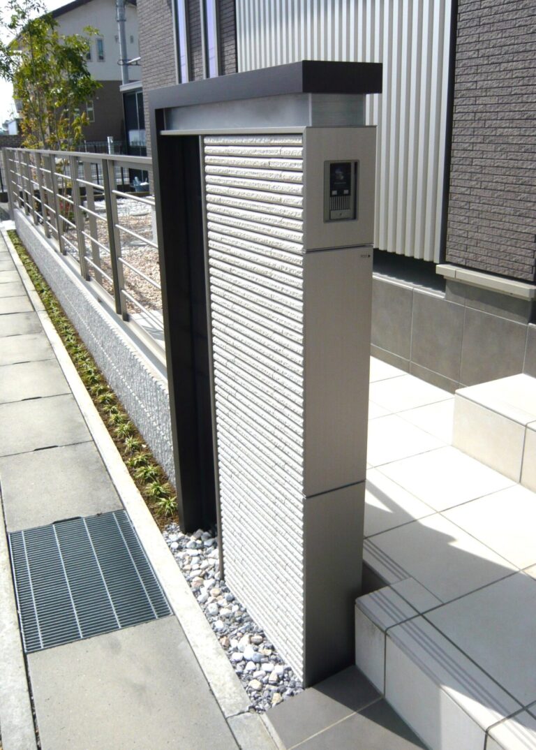 ステップ前の機能門柱は、建物の外壁と門柱のテクスチャーを合わせました。