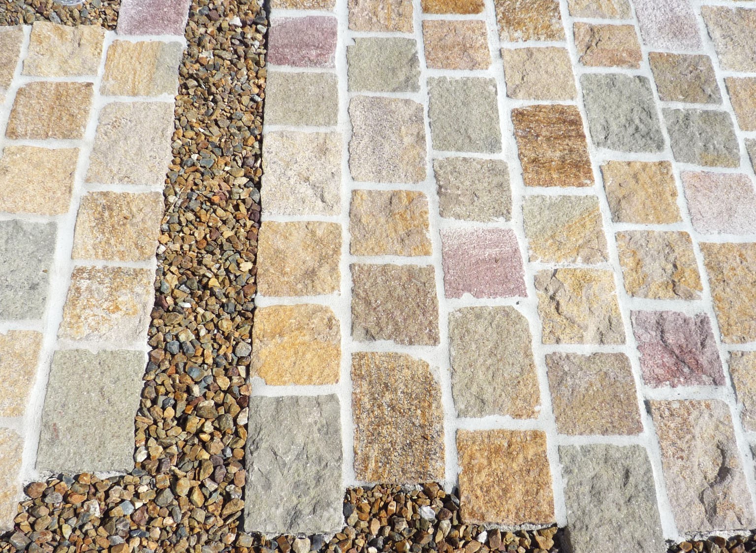 玄関へと続くアプローチには、方形石を敷き並べました。