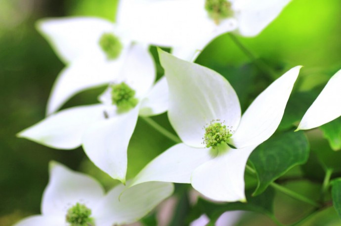 ヤマボウシの花は、5月~7月に開花します。花びらに見えるのは、総苞片です。